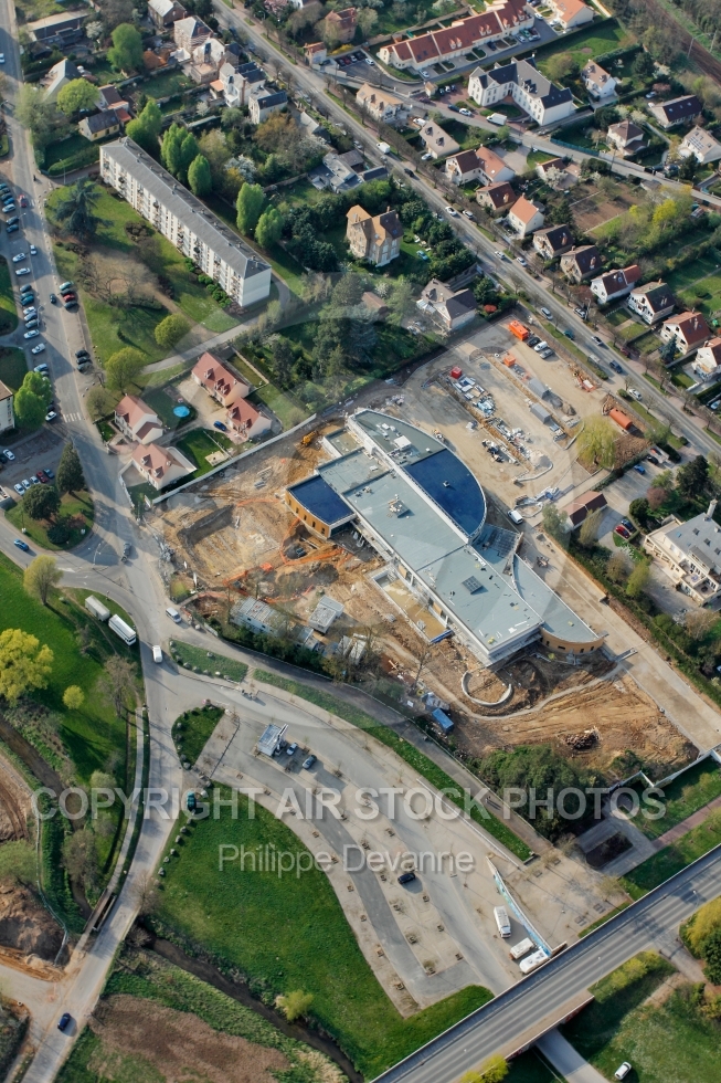 Description: Photo aérienne de la Piscine de Dourdan en construction mars 2011, 91410, Essonne, Région Ile-de-France, France