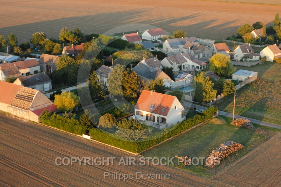 Description: Photo aérienne du village de Saint-Escobille, hameau de Paponville, 91410, département de l essonne, région Ile-de-France- prise de vue au coucher de soleil d automne le 29042013