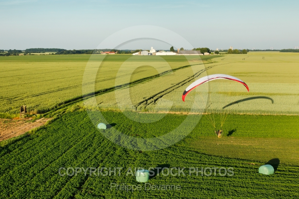 Description: Photo aérienne des champs , culture et fourage d Ile-de-France, prise de vue en ULM paramoteur le 12 Juin 2014