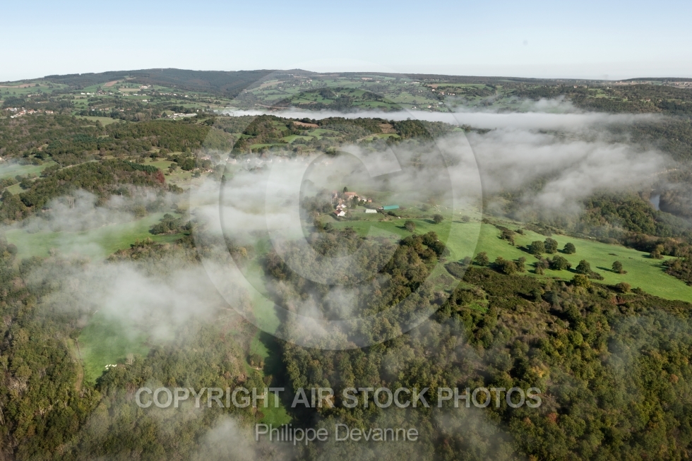 Ménat photo aérienne aérienne Auvergne vue du ciel paramoteur vol parapente Puys-de-Dôme automne 63 Clermont-Ferrand aérien ULM vue d'avion volcans Pouzol Serveran Courlange Saint-Rémy-de-Blot brume nuages paysages