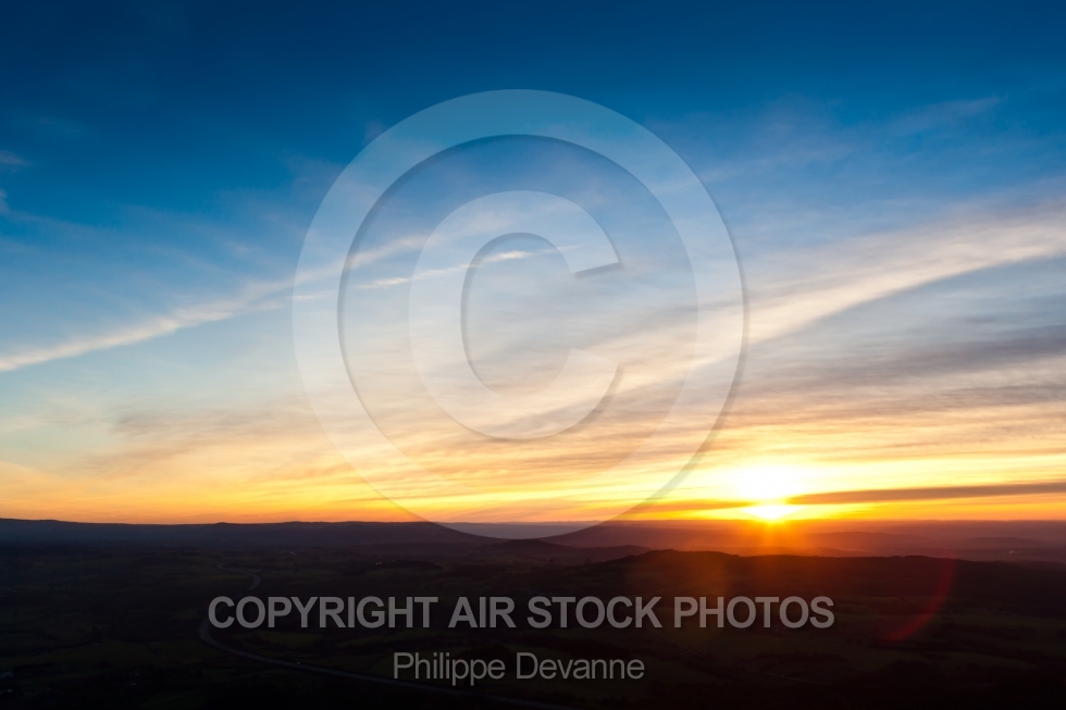 Description: Photo aérienne d un coucher de soleil en Auvergne, département du Puys de Dôme 63 . Vol d automne octobre 2013 à envrion 10 km de Clermont-Ferrand 63100