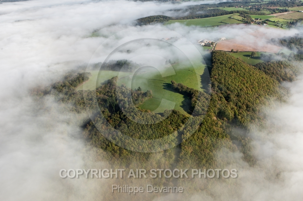 Ménat photo aérienne aérienne Auvergne vue du ciel paramoteur vol parapente Puys-de-Dôme automne 63 Clermont-Ferrand aérien ULM vue d'avion volcans Pouzol Serveran Courlange Saint-Rémy-de-Blot brume nuages paysages 63440 63000 sport extreme fun