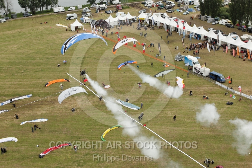 Description: A la vertical du rassemblement du 7 eme mondial du paramoteur , le 22,23 et 24 juin 201 à57910 Basse-Ham, département de la Moselle, région Lorraine, France