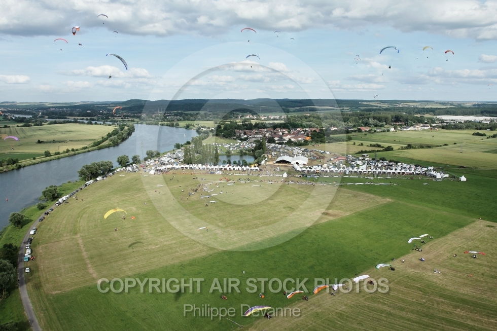 Description: A la vertical du rassemblement du 7 eme mondial du paramoteur , le 22,23 et 24 juin 201 à57910 Basse-Ham, département de la Moselle, région Lorraine, France