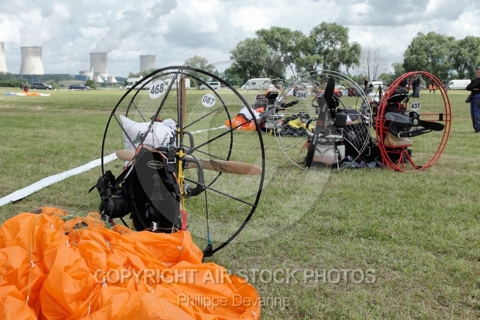 Description: Paramoteurs vus du sol au 7 eme mondial du paramoteur , le 22,23 et 24 juin 201 à57910 Basse-Ham, département de la Moselle, région Lorraine, France