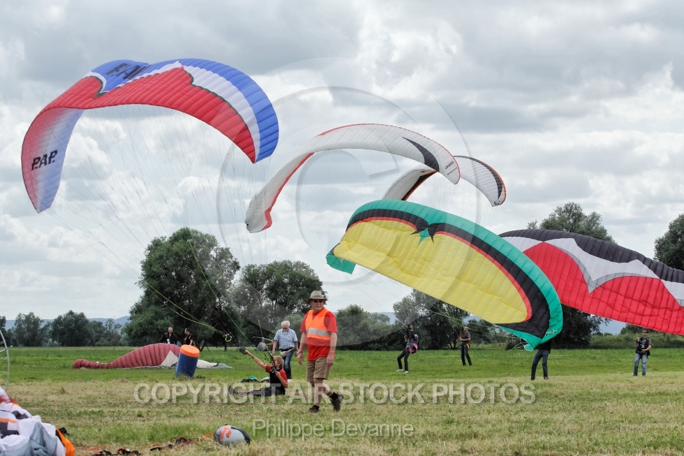 Description: Paramoteurs vus du sol au 7 eme mondial du paramoteur , le 22,23 et 24 juin 201 à57910 Basse-Ham, département de la Moselle, région Lorraine, France