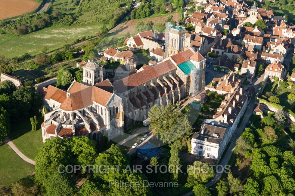 Photographie aérienne de la Basilique Sainte-Marie-Madeleine de Vézelay,dans le departement de l Yonne 89450, Région Bourgogne-Franche-Comté, France