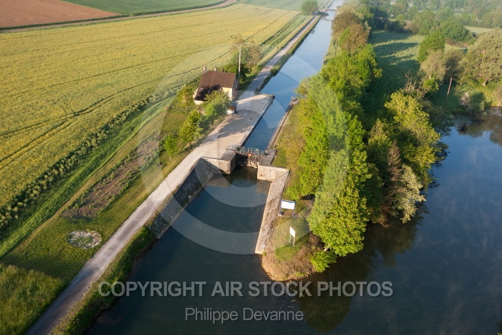 Ecluse de Ravereau vue du ciel à Merry-sur-Yonne en Bourgogne