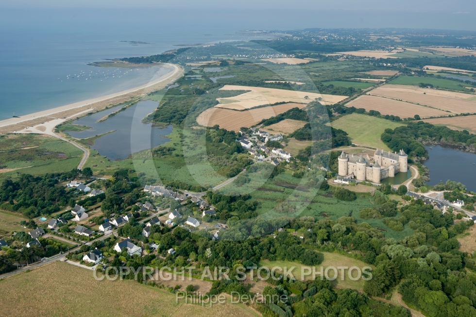 photo aérienne château Suscinio Sarzeau Morbihan Bretagne forteresse médiéval manoir moyen âge atlantique France monument historique vue du ciel vue d'avion 56 56370 aerien