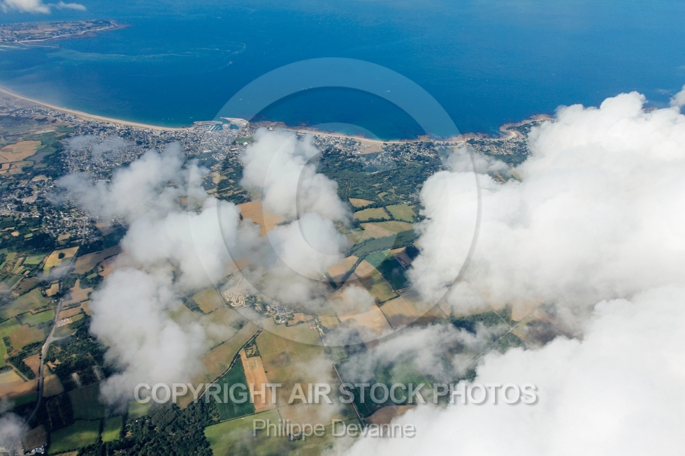 Photo aérienne vue au dessus des nuages de la Turballe 44420 et de la Rade du Croisic à 1500m d altitude en ULM , Canton de Guérande, département de Loire-Atlantique, Région Pays-de-Loire, France