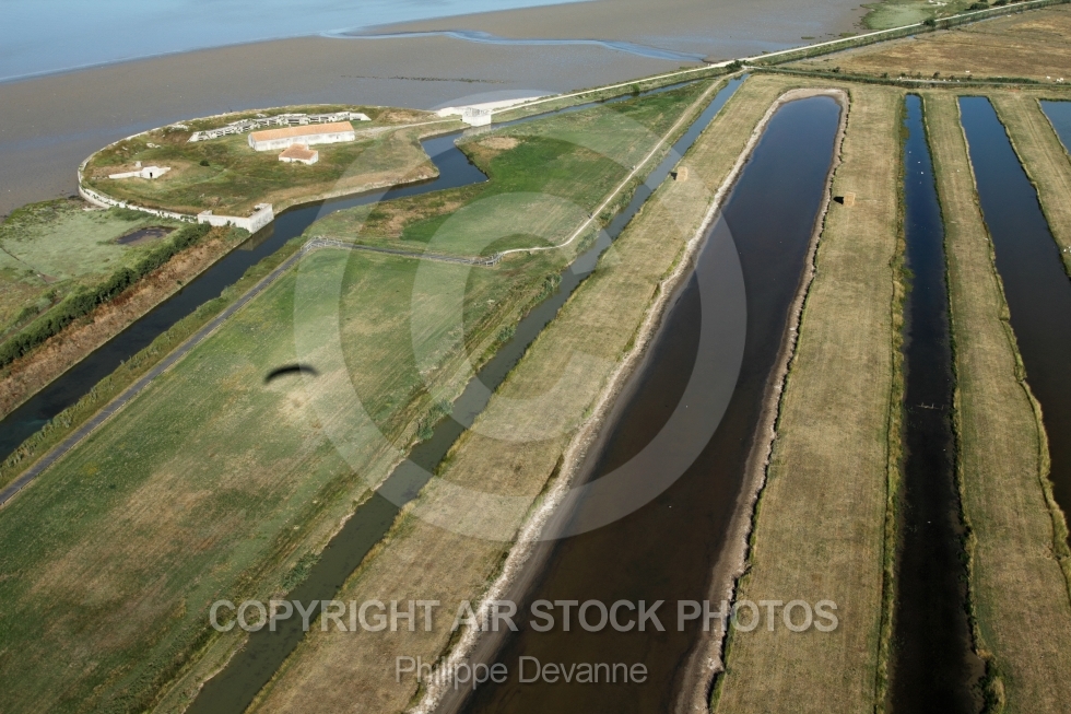 Description: Photographie aérienne du Fort de la Pointe dit Fort Vasoux et marais de la Cabane situé au Nord de l embouchure de la Charente sur la commune de Fouras 17450, département de la Charente-Maritime 17, Région Poitou-charentes, France, Europe
