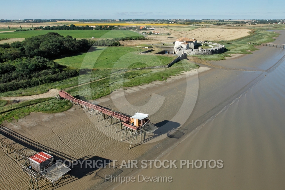 Vue aérienne de Fort Lupin et carrelet, situé entre Soubise et Saint-Nazaire-sur-Charente 17780, département de la Charente-Maritime 17, Région Poitou-charentes, France, Europe