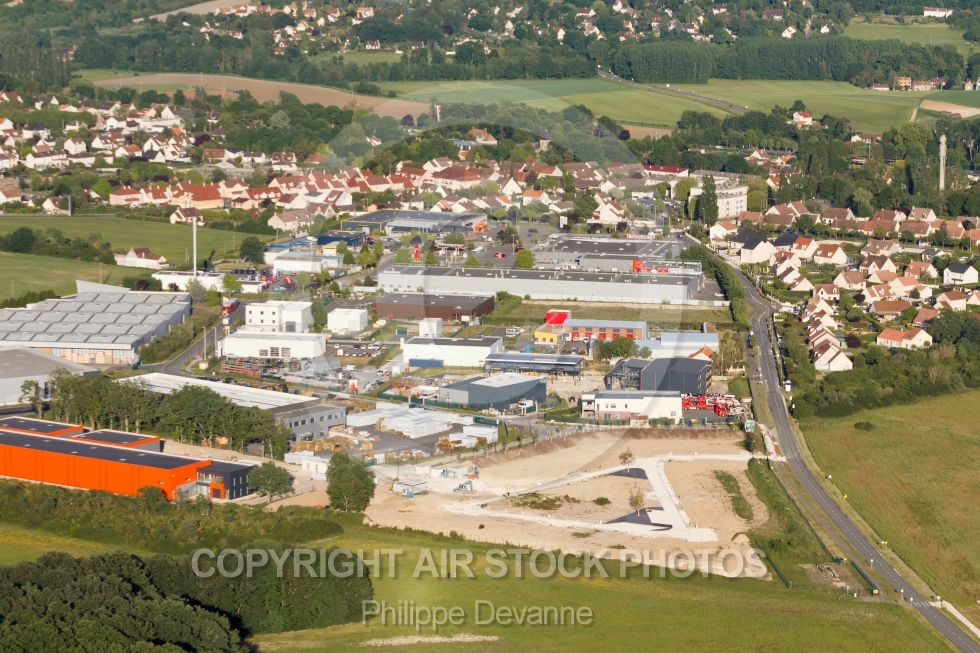 Description: Photographie aérienne de la zone commerciale et industrielle de Breuillet Port Sud 91650 , commune du département de l Essonne, région Île-de-France, située à 35 km de Paris, France