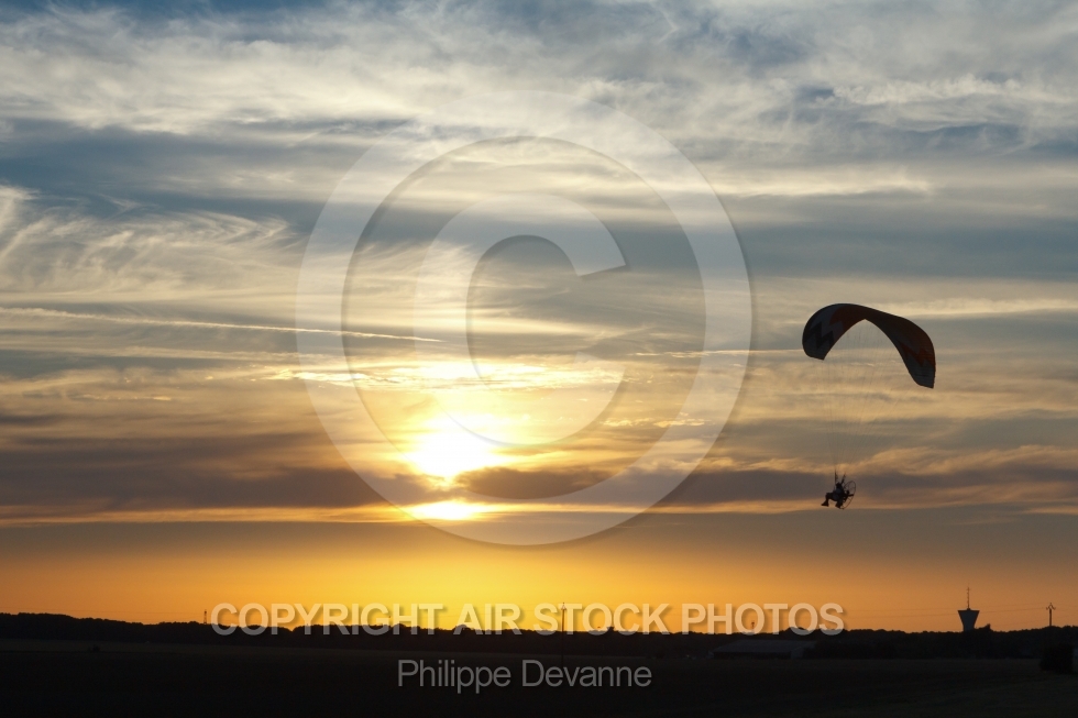 Description: Couché de soleil avec vol en paramoteur en Ile-de-France, septembre 2016