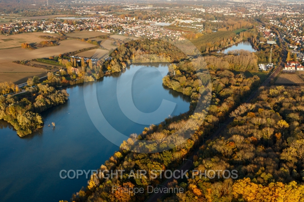 Photo aérienne du bassin de retenu de l Orge à Bruyères-le-Châtel 91680, Essonne, département de l ïle-de-France - Automne 2015