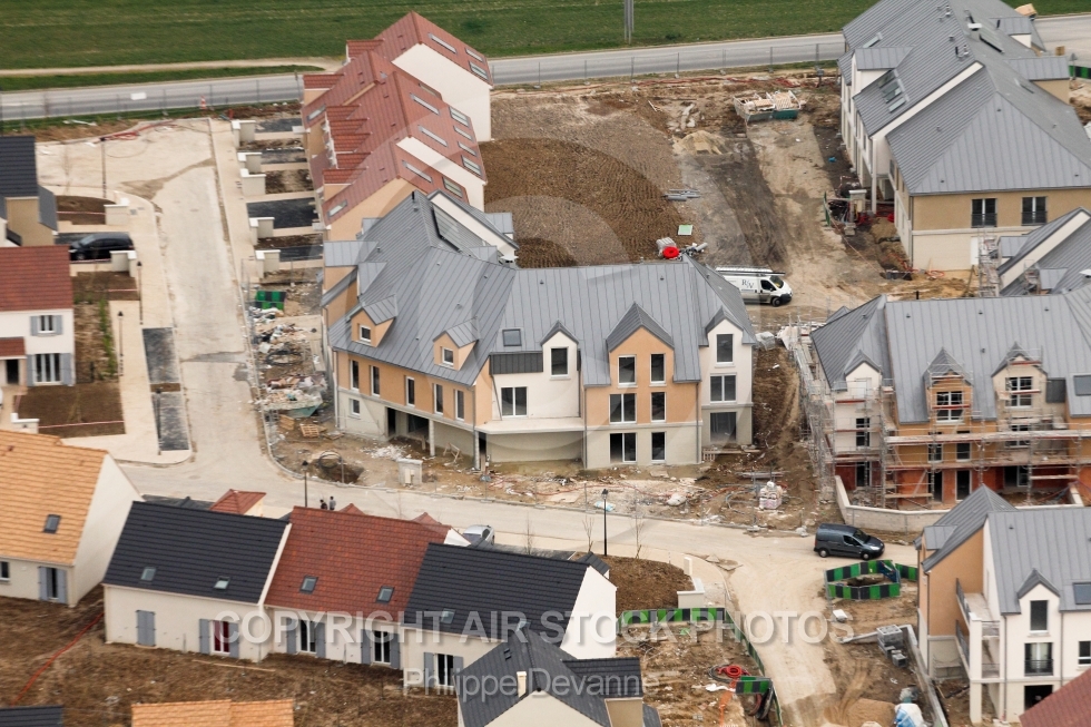 Description: Vue aérienne du Lotissement en construction Le Parc des Mesanges sur la commune de Boissy sous saint yon, 91790, département du sud de l essonne, Ile de France. Mars 2014