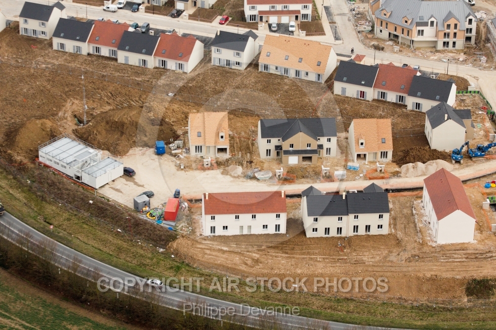 Description: Vue aérienne du Lotissement en construction Le Parc des Mesanges sur la commune de Boissy sous saint yon, 91790, département du sud de l essonne, Ile de France. Mars 2014