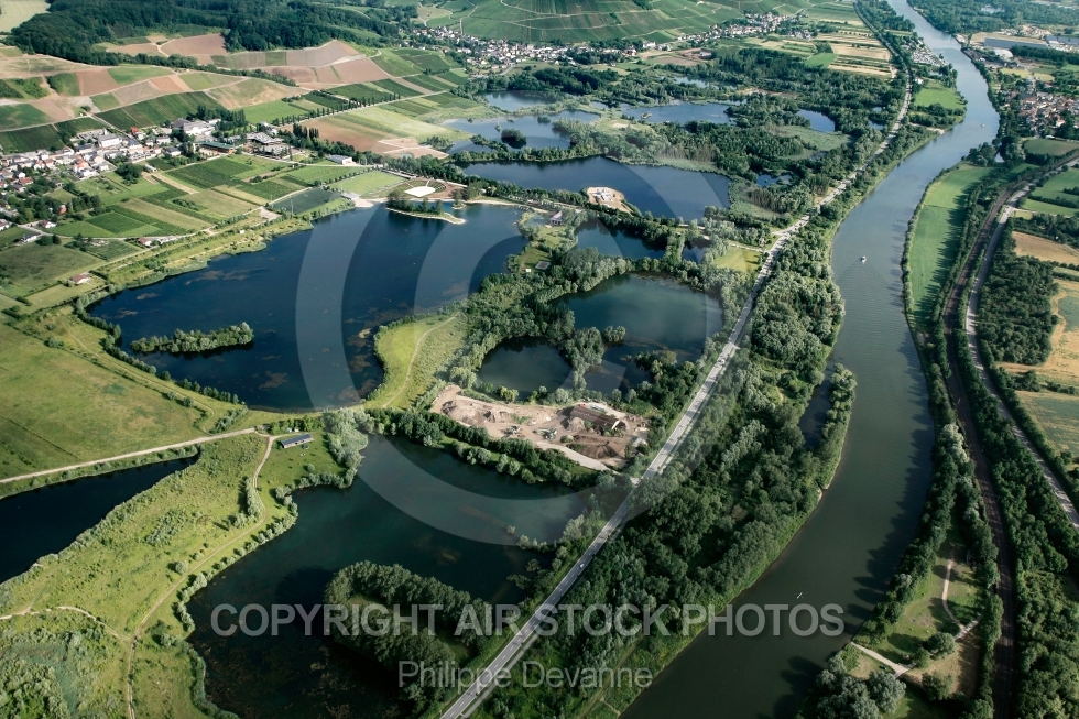 Description: Photo aerienne des lacs de Remerschen, commune de Schengen, Le Luxembourg vue du ciel en ULM paramoteur, District de Grevenmacher, Canton de Remich, Europe