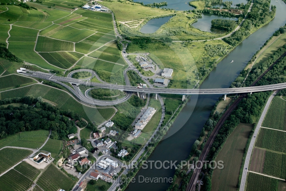 Description: Photo aerienne du tunnel autoroute A13 de schengen àla frontière du Luxembourg et de l allemagne, vue du ciel en ULM paramoteur, District de Grevenmacher, Canton de Remich, Europe