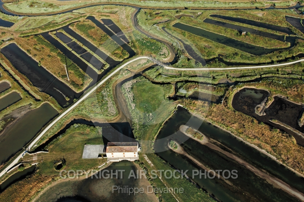 Photographie aérienne des marais salants de l ancien Moulin des Loges à Marennes , 17320, département de la Charente-Maritime 17, Région Poitou-charentes, France, Europe