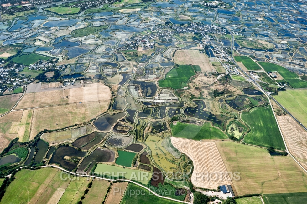 Photo aérienne de la zone naturelle des marais salants de Guérande 44350, département de la Loire Atlantique, Région Pays de la Loire - Juillet 2013