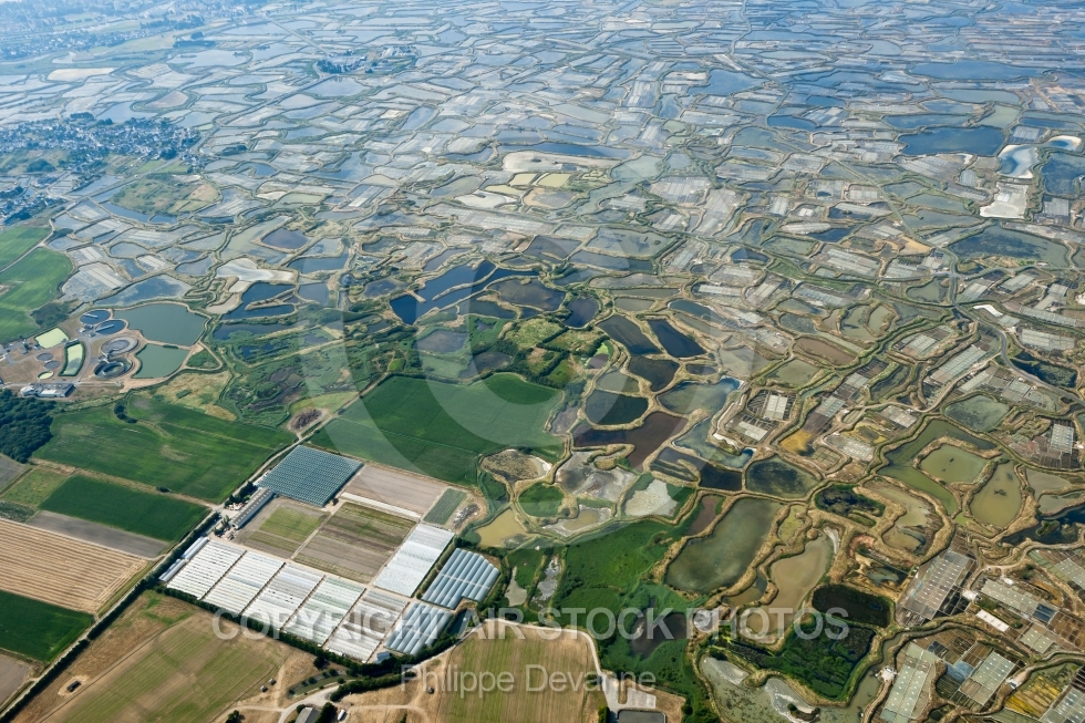 Photo aérienne de la zone naturelle des marais salants de Guérande 44350, département de la Loire Atlantique, Région Pays de la Loire - Juillet 2013