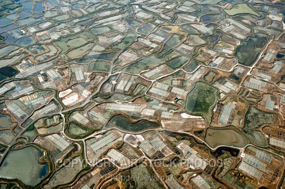 Photo aérienne de la zone naturelle des marais salants de Guérande 44350, département de la Loire Atlantique, Région Pays de la Loire - Juillet 2013