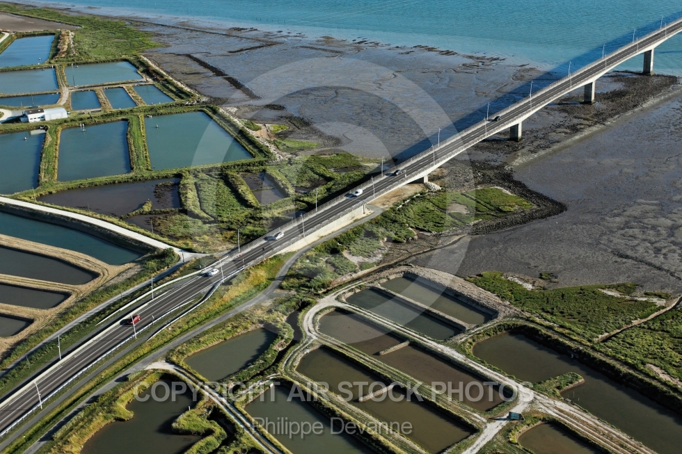 Description: photo aérienne du Pont de la Seudre ou Viaduc de la seudre reliant La tremblade à Marennes-Oléron, vue de la Tremblade 17390, département de la Charente-Maritime 17, Région Poitou-charentes, France, Europe