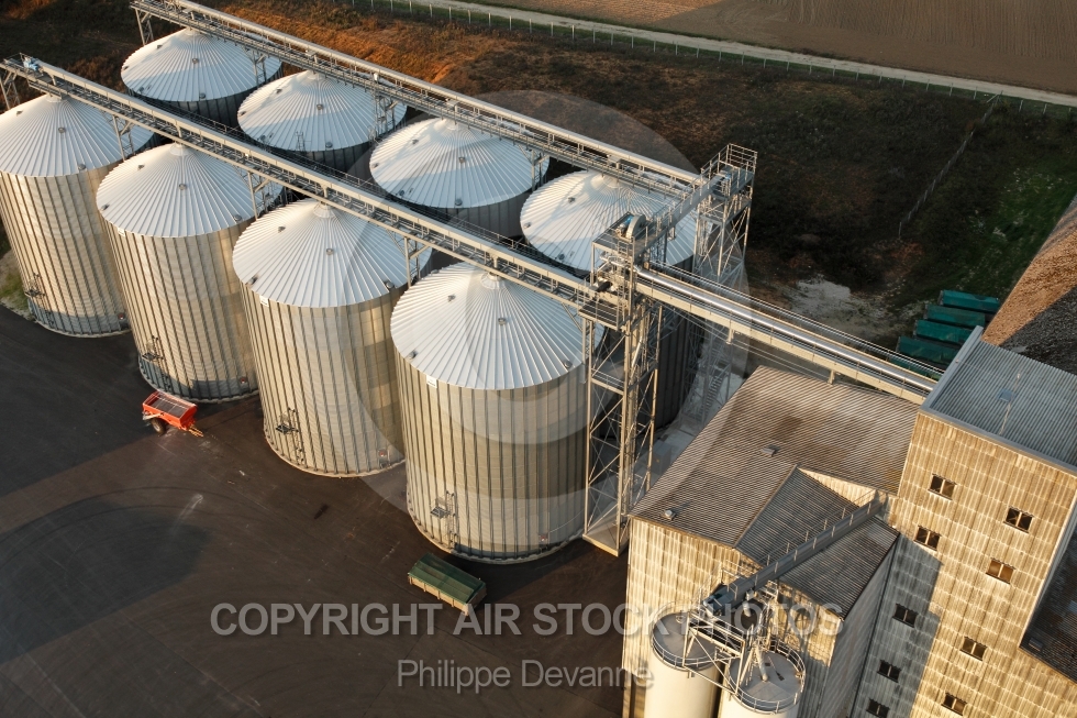 Description: Photo aérienne entreprise silos a grains sur la commune de Coulombs, 28210, département d Eure-et-Loire, France