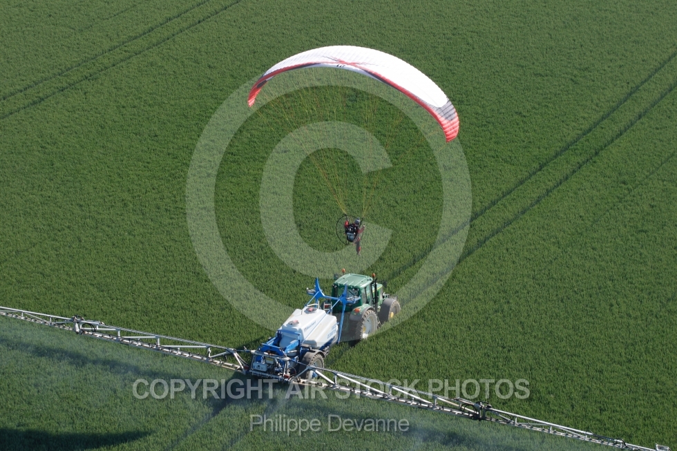| Paramoteur en vol au dessus d un tracteur | Qualité : Fichier JPG Original Dimensions : 3888(px) x 2592(px) Megapixels : 10,08 Taille du fichier : 9,23(mb) Prix : €45 ( TTC, TVA incluse 20.0000% - TVA 20 )Prix: €45
