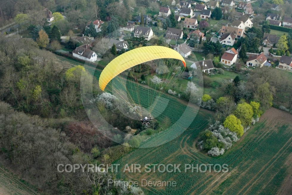 photos aériien d un paramoteur au dessus de la campagne de Saint-Chéron, 91530, Essonne, Ile-de-France, France