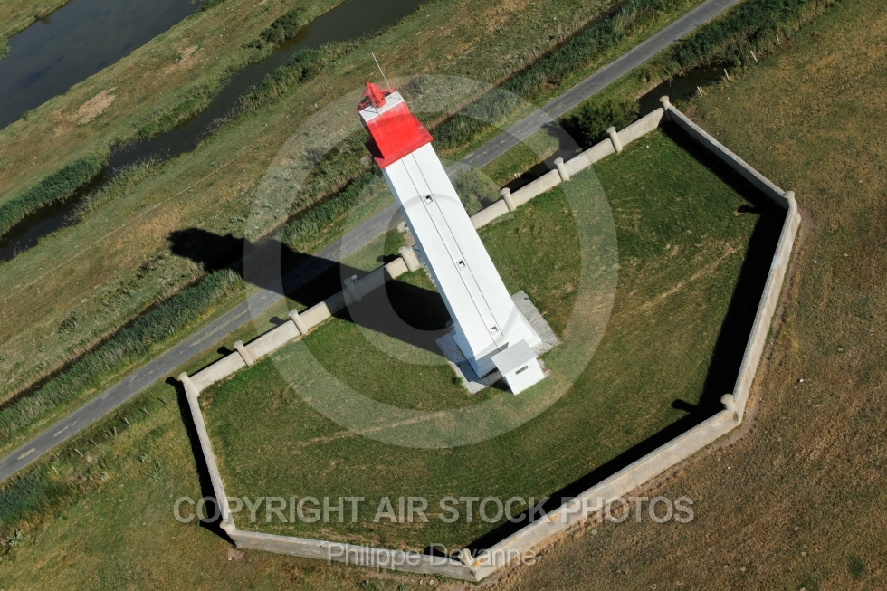 Description: Photo aérienne du phare situé à proximité de l embouchure de la Charente entre le Fort la Pointe ou fort Vasoux et la Cabane des Cabanes sur la commune de Fouras 17450, département de la Charente-Maritime 17, Région Poitou-charentes, France, Europe