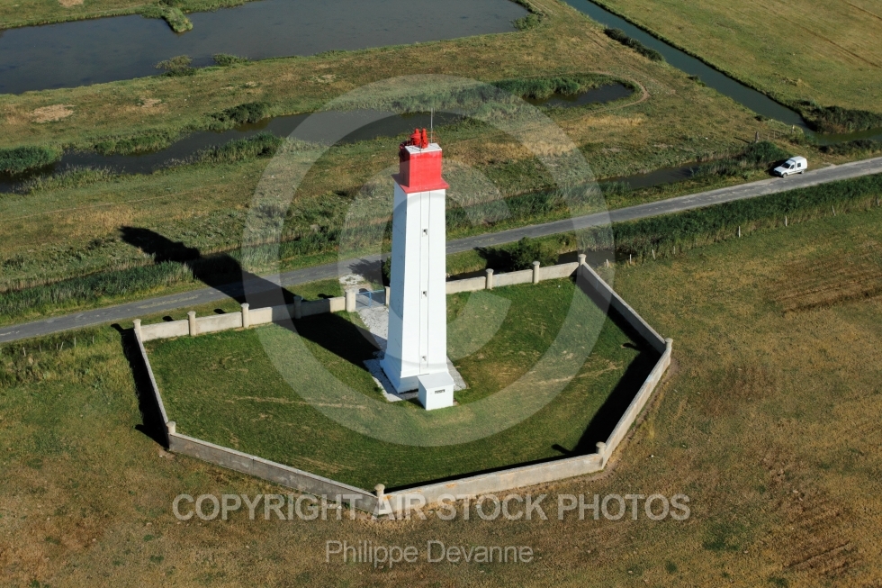 Photo aérienne du phare situé à proximité de l embouchure de la Charente entre le Fort la Pointe ou fort Vasoux et la Cabane des Cabanes sur la commune de Fouras 17450, département de la Charente-Maritime 17, Région Poitou-charentes, France, Europe