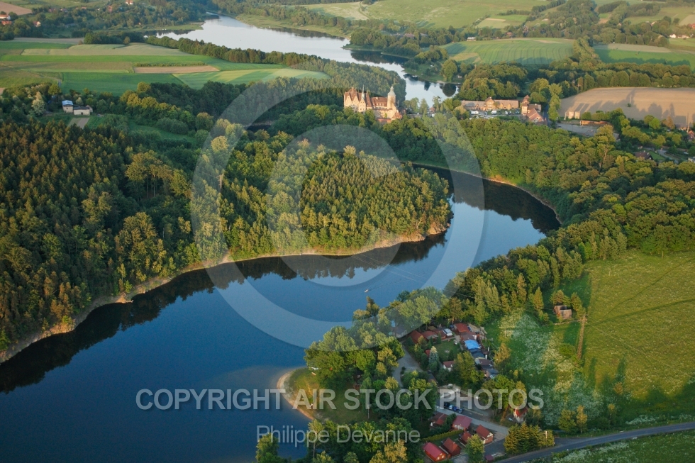 photo aérienne czocha zamek château pologne polska lwowecki jelenia gora jeleniogorski vue aérienne vue du ciel paramoteur paramotor europe
