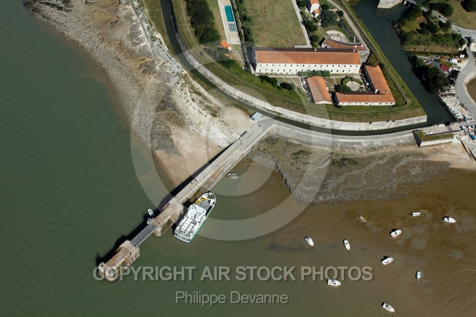 Photographie aérienne de l embarcadère du Fort de la Rade et de la Pointe Sainte-Catherine situé au Sud de lîle d Aix, 17123, département de la Charente-Maritime 17, Région Poitou-charentes, France, Europe