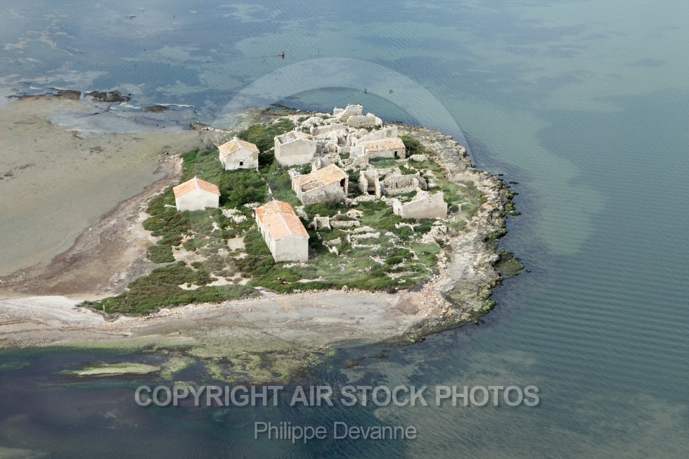 Description: Photo aérienne de l île de la Nadière sur l Etang de Bages Sigean , au sud de l île de Ste-Lucie, en plein coeur du parc naturel Narbonnais . Port-la-Nouvelle 11230, Aude, Languedoc-Roussillon, France