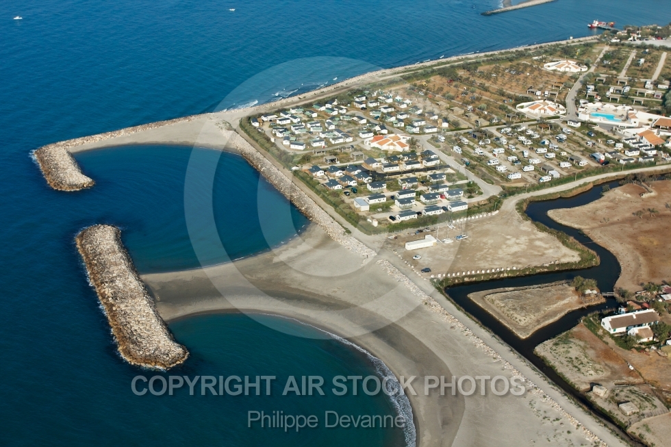 Description: Photo aérienne des plages et digues de Sainte Maries de la Mer en Camargue, 13096 Bouches du Rhone, P.A.C.A, Provence-ALpes-Côte d Azur, France, Europe