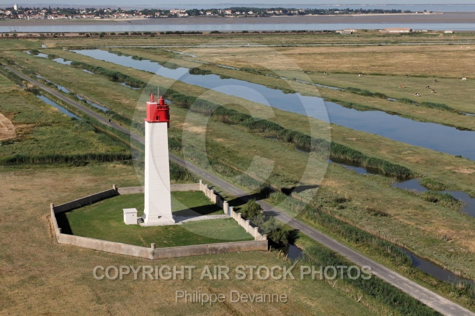 Description: Photo aérienne du phare situé à proximité de l embouchure de la Charente entre le Fort la Pointe ou fort Vasoux et la Cabane des Cabanes sur la commune de Fouras 17450, département de la Charente-Maritime 17, Région Poitou-charentes, France, Europe