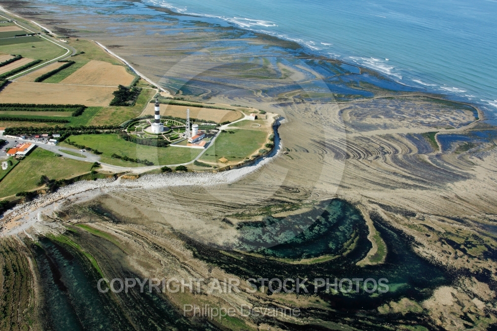 Photographie aérienne du Phare de Chassiron situé au nord de lîle d Oléron sur la commune de Saint-Denis-d Oléron 17650, département de la Charente-Maritime 17, Région Poitou-charentes, France, Europe