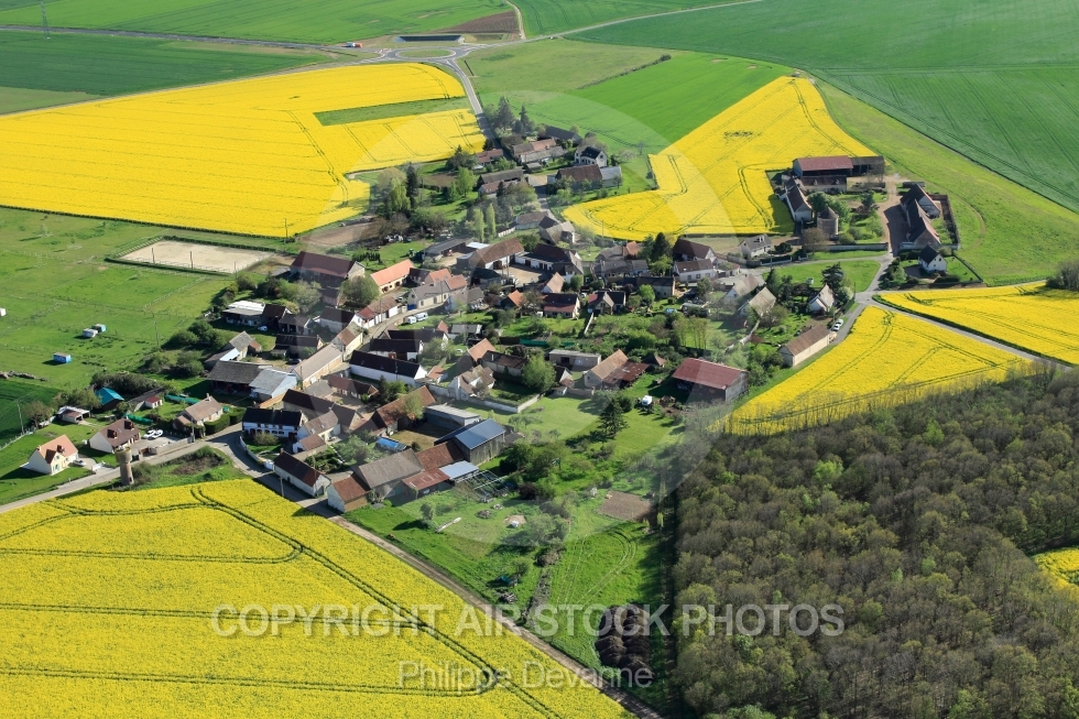 Description: Photo aérienne des champs de colza en fleur au printemps en Eure-et-Loire, région Centre, France