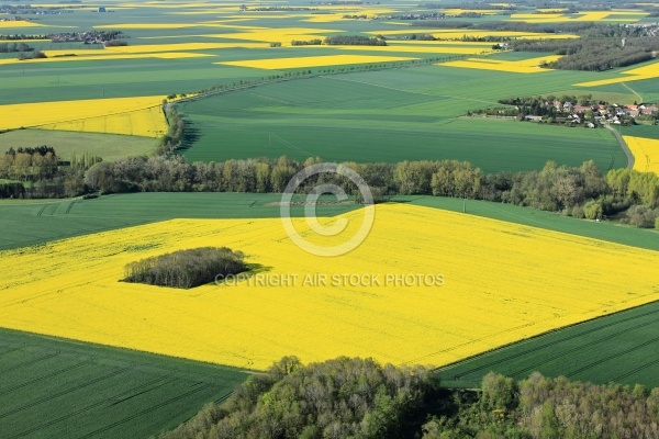 Description: Photo aérienne des champs de colza en fleur au printemps en Eure-et-Loire, région Centre, France