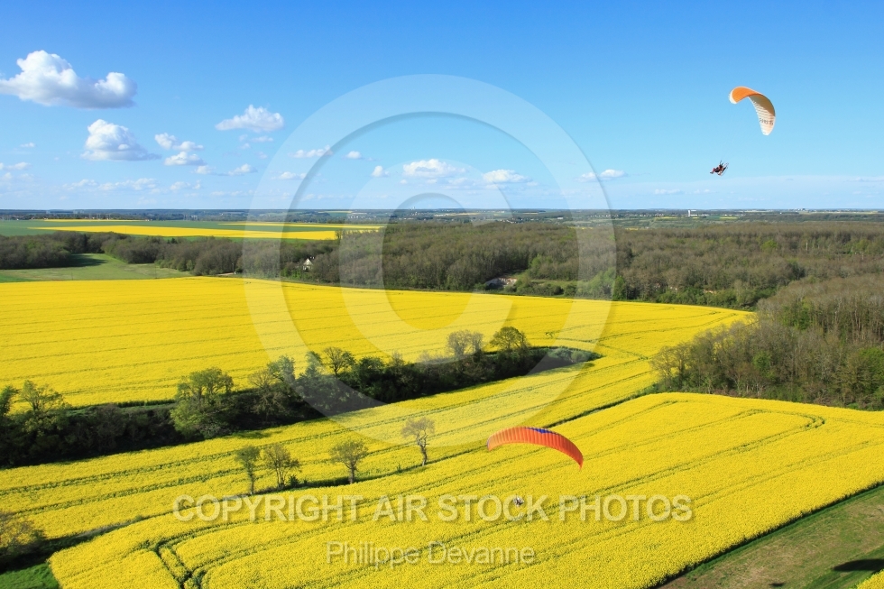 Description: Champs de colza en fleur vus du ciel en paramoteur en Eure et Loire 28, région Centre, France, Europe