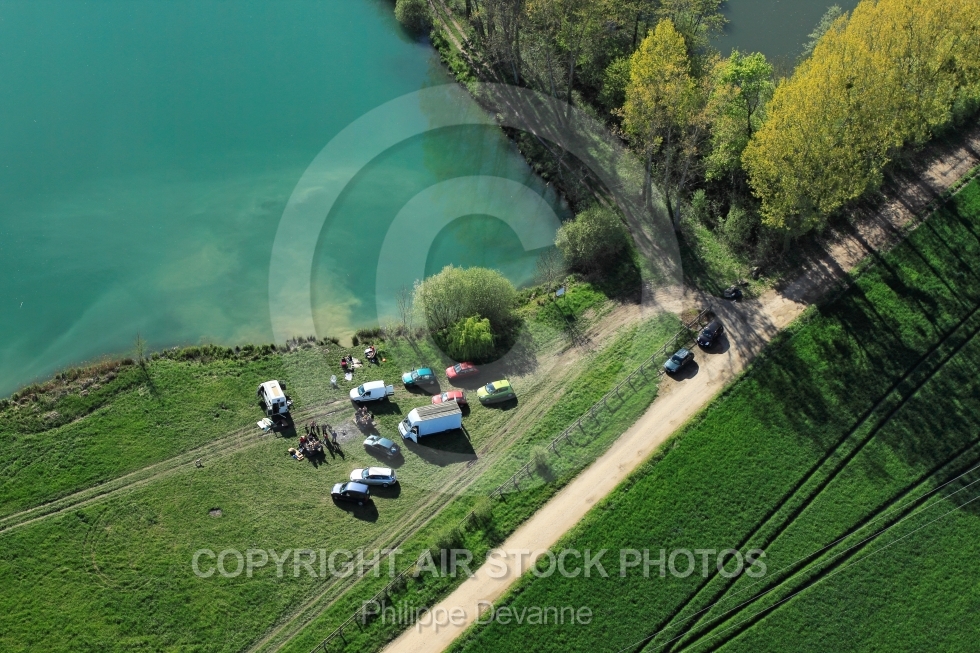 photo aérienne d un pique nique barbecue sur l étangs de Villiers-le-Morhiers 28130, les grans prés, département d Eure-et-Loire, région Centre, France