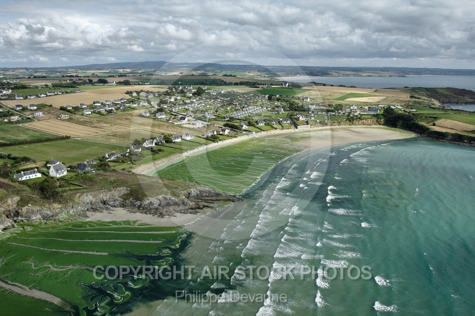 algues vertes algues prolifération Plage Lestrevel Plomodiern polution 29550 Bretagne Finistère laitue de mer 29 côte photo aérienne aérien aérienne photo Douarnenez Baie de Douarnenez France Ouest Europe mer iroise mer d'Iroise Celte celtique Océan Atlantique vue du ciel vu du ciel photographie survol Bretagne vue du ciel Finistère vue du ciel