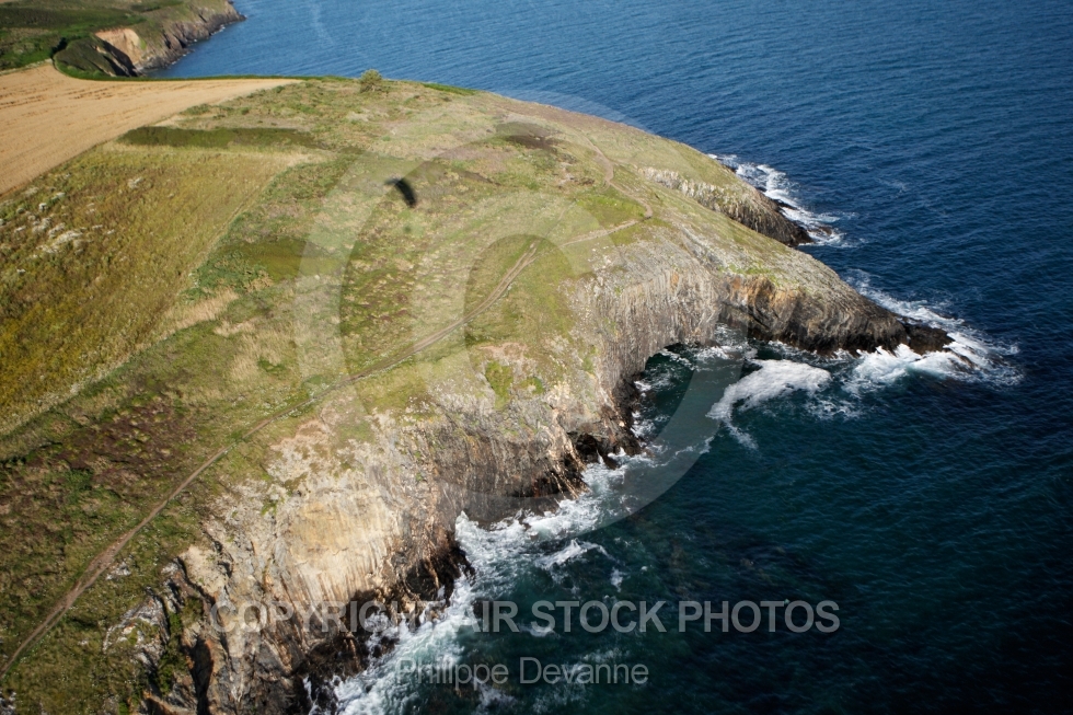 Description: photo aérienne de l Anse de Kervijen vue des falaises de Ty Mark, Pors ar Varg, Commune de Plomodiern 29550, département du Finistère 29, La Bretagne vue du ciel, France Ouest, Europe