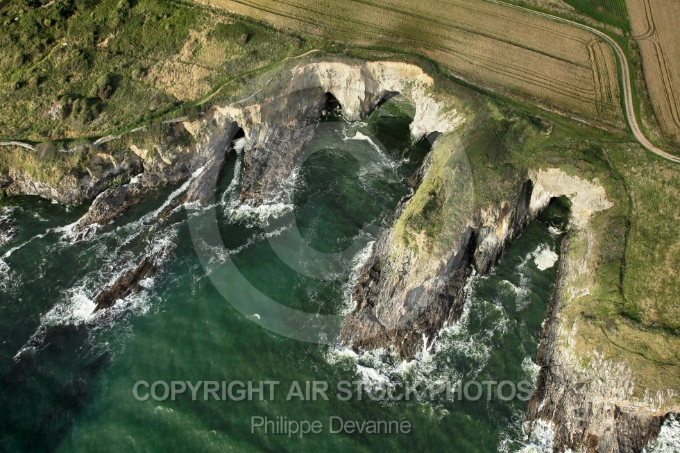 Description: Photo aérienne des falaises de Plomodiern 29550, à l ouest de Créac h ar Bleïz et au sud de la Pointe de Tal ar Grip, département du Finistère 29, La Bretagne vue du ciel, France Ouest, Europe