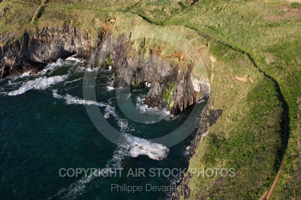 Photo aérienne des falaises de la Pointe de Trefeuntec et Beg an Ty Garde, commune de Plonévez-Porzay 29550 département du Finistère 29, La Bretagne vue du ciel, France Ouest, Europe
