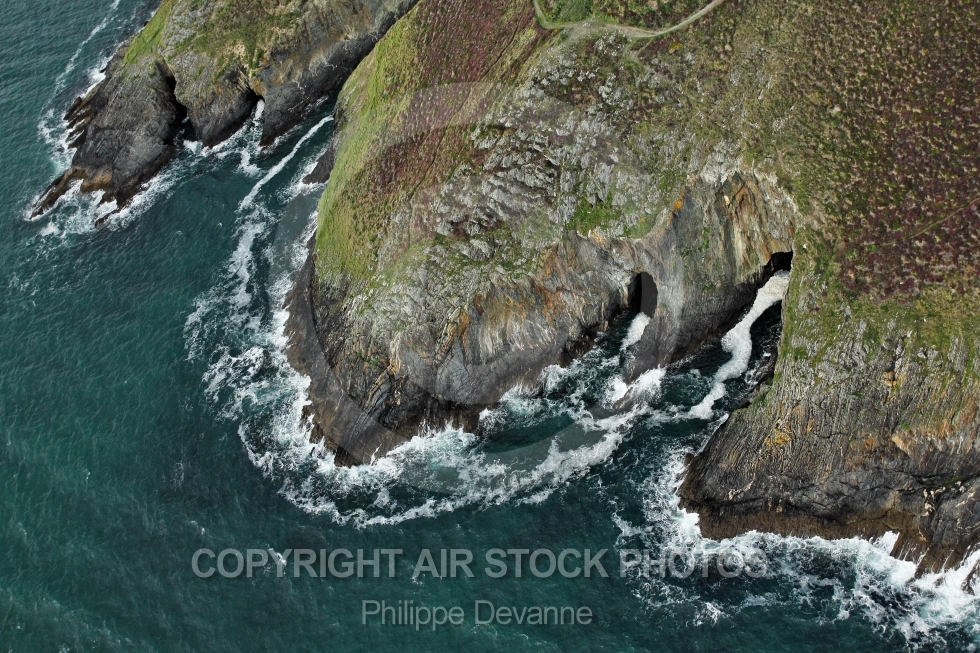 falaises Ty Mark Plomodiern grottes Bretagne Finistère 29 côte anse de Ty Mark Kervigen photo aérienne Tal Ar Grip 29550 Pentrez Lestrevet Pors Ar Varg aérien aérienne photo Douarnenez Baie de Douarnenez France Ouest Europe mer iroise mer d'Iroise Celte celtique Océan Atlantique vue du ciel vu du ciel photographie survol Bretagne vue du ciel Finistère vue du ciel