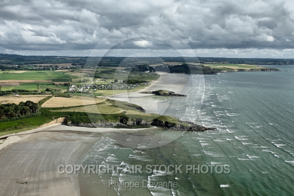 Description: Photo aérienne de l Anse de Kervigen, la plage de ty an Quer, lîle Salgren et la plage de Ste-Anne. premier plan commune de Plomodiern, Ploéven et Plonévez-Porzay, département du Finistère 29, La Bretagne vue du ciel, France Ouest, Europe