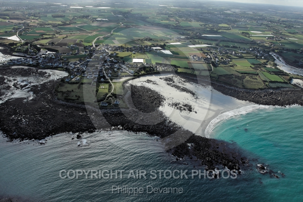 Description: Vue aérienne en paramoteur des côtes du Finistère 29, région Bretagne, arrondissement de Morlaix, Communauté de communes du Pays Léonard, France , Europe
